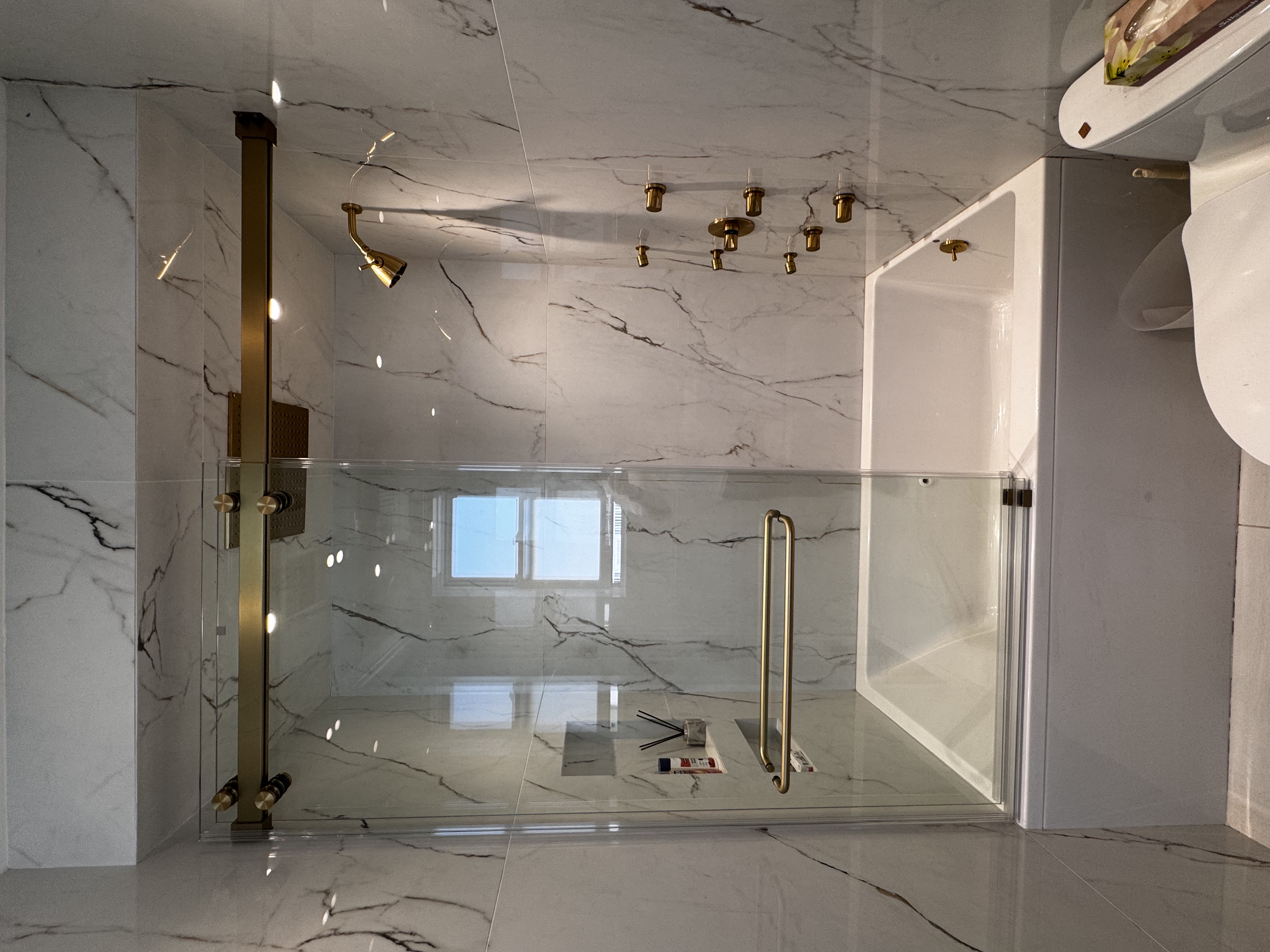 Bypass shower doors feature two or more panels that slide past each other on a track system. This classic design is particularly popular for bathtub/shower combinations and provides reliable water containment.